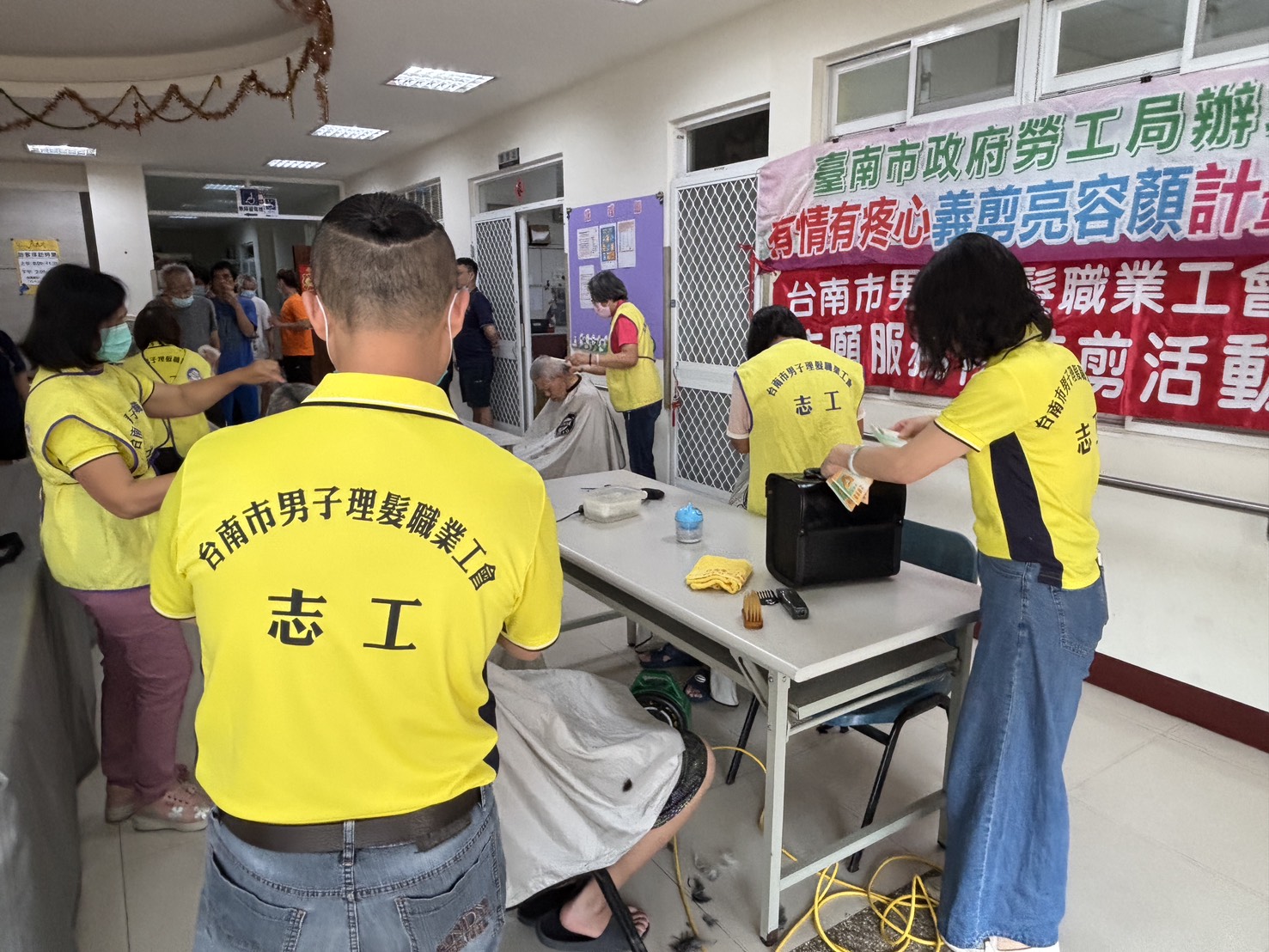 當日同時間則由台南市美容業職業工會理事長辛美嬌帶領多位經驗豐富的義剪志工前往中西區承宇宗老人長期照顧中心(養護型)為長者服務。義剪志工們細心觀察及耐心傾聽長輩想法,為其設計清爽合宜的髮型。剪髮過程中,志工親切問候、關懷近況,讓長者在輕鬆愉悅的氛圍中完成整理。許多長輩在鏡前露出開心笑容,精神與自信隨之提升,現場洋溢溫馨感動。